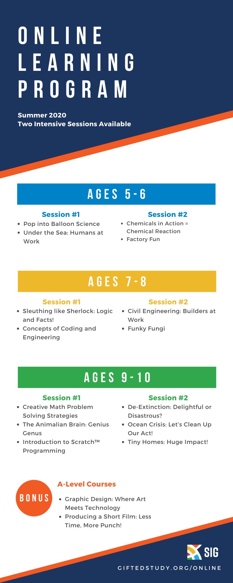 The four-week SIG Saturday program will begin on Jan. Admission to the Summer Institute for the Gifted program is on a rolling first-come first-served basis for qualified students. SIG provides summer academic enrichment programs for gifted academically talented creative and high.